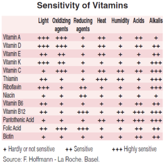 As regulatory agencies are aware of this situation, they have limited the tolerances (deviation) of the real content from what is claimed on the label. EFSA (European Food Safety Authority) limits these deviations to +50%, -20%. In other words, if the label claims a content of 100 mg of a vitamin, the real content must be between 80 mg and 150 mg. On the other hand, FDA requires that naturally-occurring ingredients must be, at least in an 80% content of what is claimed on the label, and accepts a “reasonable” excess of vitamins.