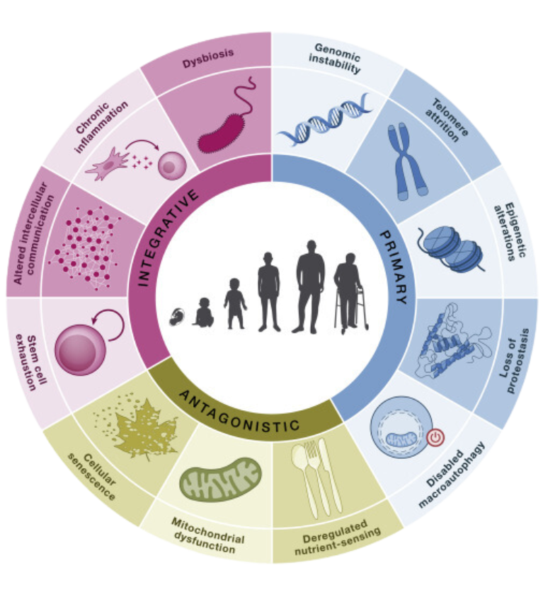 Scientific research has identified 12 key processes that together cause and explain the aging process. These are known as the “Hallmarks of Aging” or the 12 signs of aging: